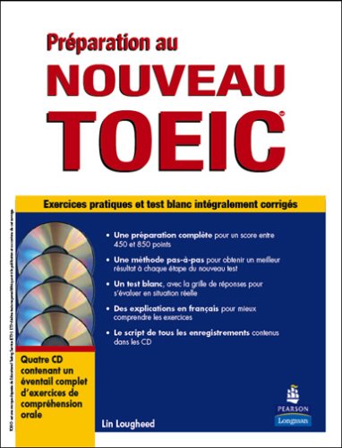 L'objectif est d'accélérer la bonne compréhension des consignes avant et pendant le test. Une fois les diverses catégories d'exercices traitées, vous pourrez vous entraîner sur une épreuve type du même format et de la même durée que l'épreuve réelle. La méthode d'apprentissage proposée, qui repose sur le livre et sur les quatre CD joints, constitue une approche complète et fidèle au nouveau test TOEIC. Elle garantit une préparation optimale aux candidats qui souhaitent obtenir un score entre 450 à 850 points.